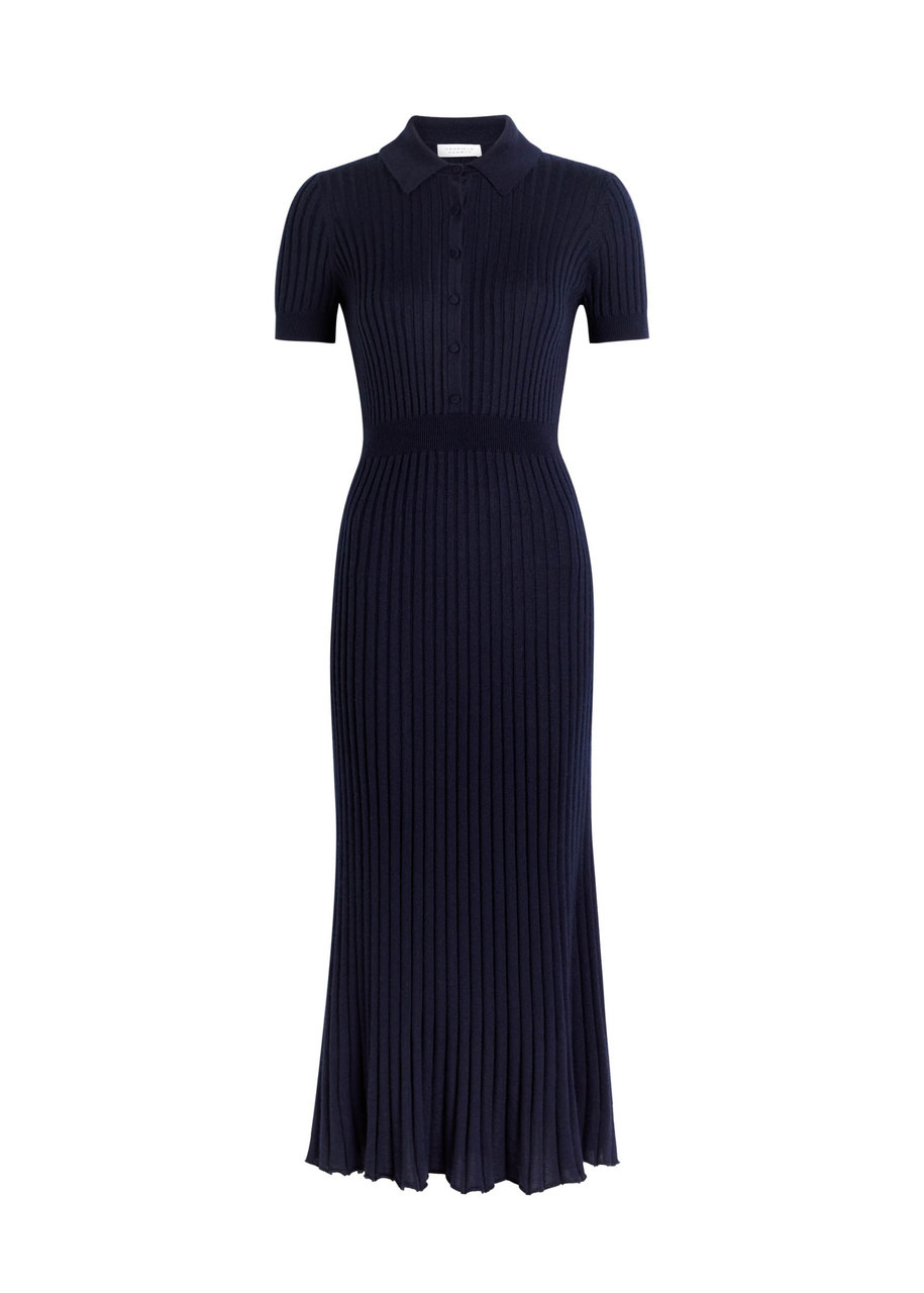 Amor Ribbed Dress in Dark Navy Silk Cashmere