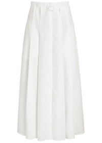 Info & Care Gabriela Hearst linen skirt Pleated, belt loops, detachable adjustable belt, two side slip pockets, fully lined; Concealed hook and button fastenings through front 100% linen; lining: 70% cotton, 30% silk Dry clean Size & Fit Length waist to hem: 37 inches/ 94cm Midweight Loose fit, A-line cut Model is 5'10"/ 178cm and wears a size;IT40