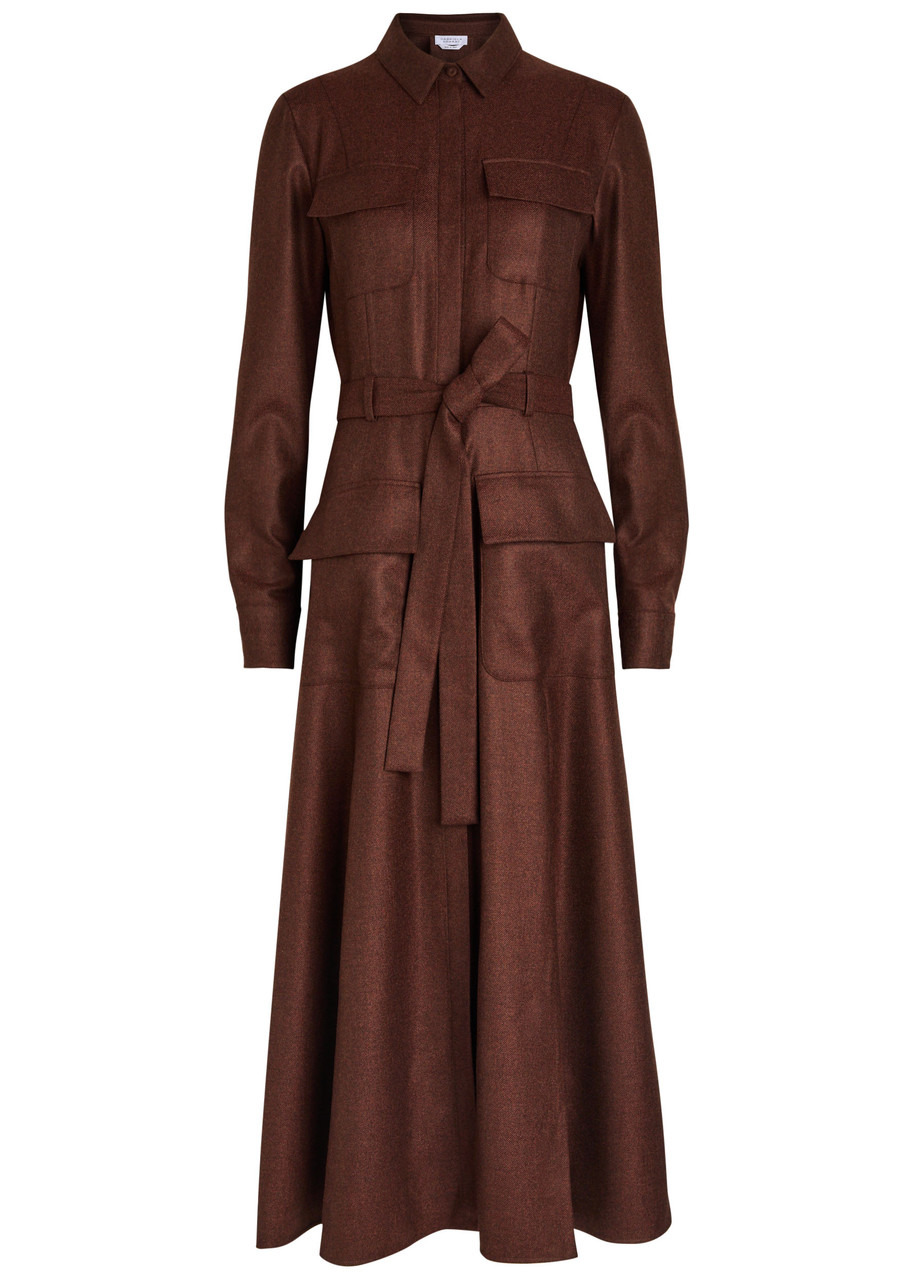 Gabriela Hearst Meyer Belted Wool-blend Midi Shirt Dress