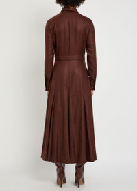 Meyer Pleated Maxi Shirtdress in Burnt Sienna Wool Cashmere Flannel