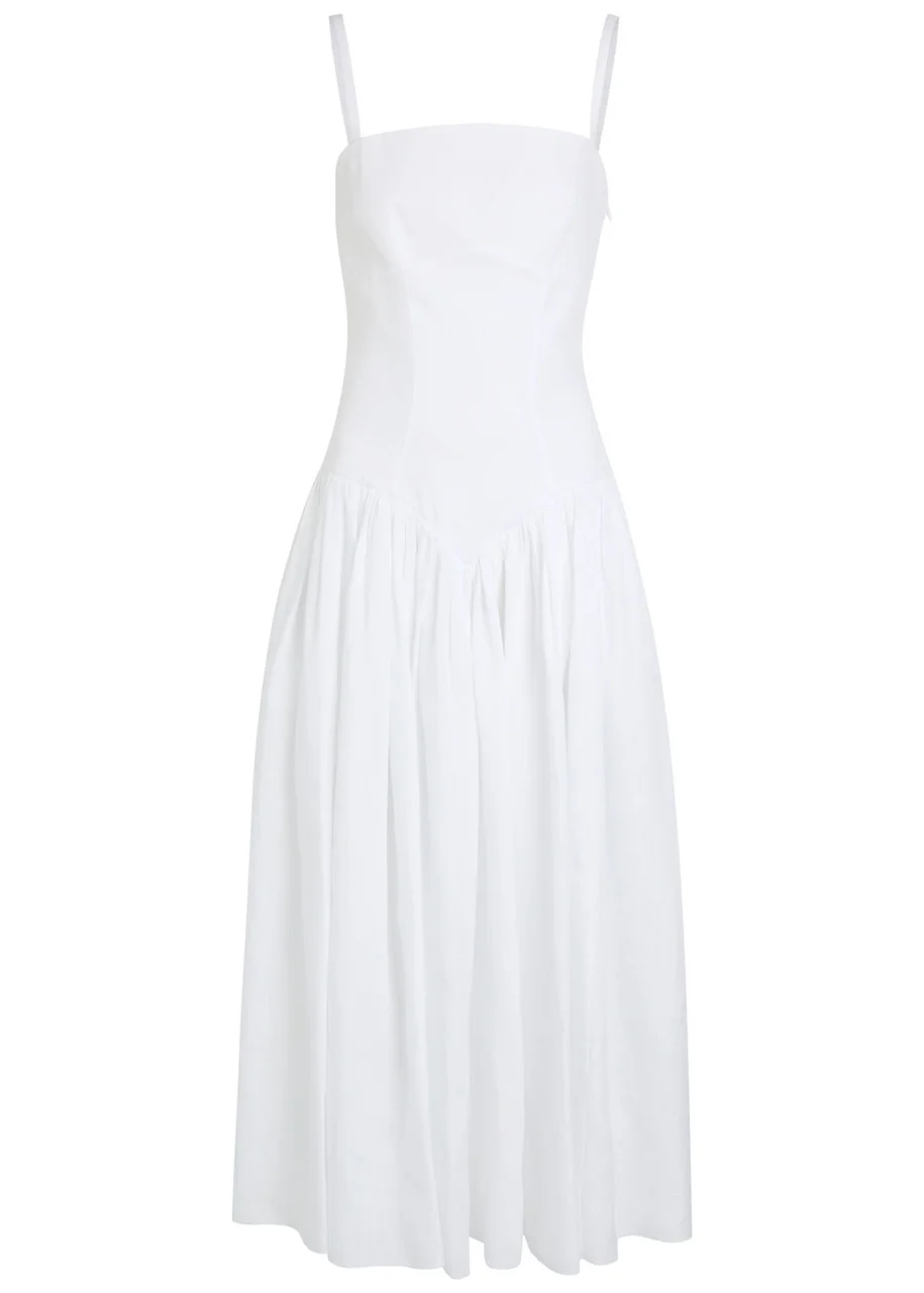 Info & Care Gabriela Hearst linen dress Square-neck, bow design at open back, gathered dropped waist, partially lined Concealed hook and zip fastening at side 100% linen Dry clean Size & Fit Length shoulder to hem: 51 inches/ 129.5cm Midweight Slim fit, flared from hips Model is 5'9"/ 175cm and wears a size;IT40