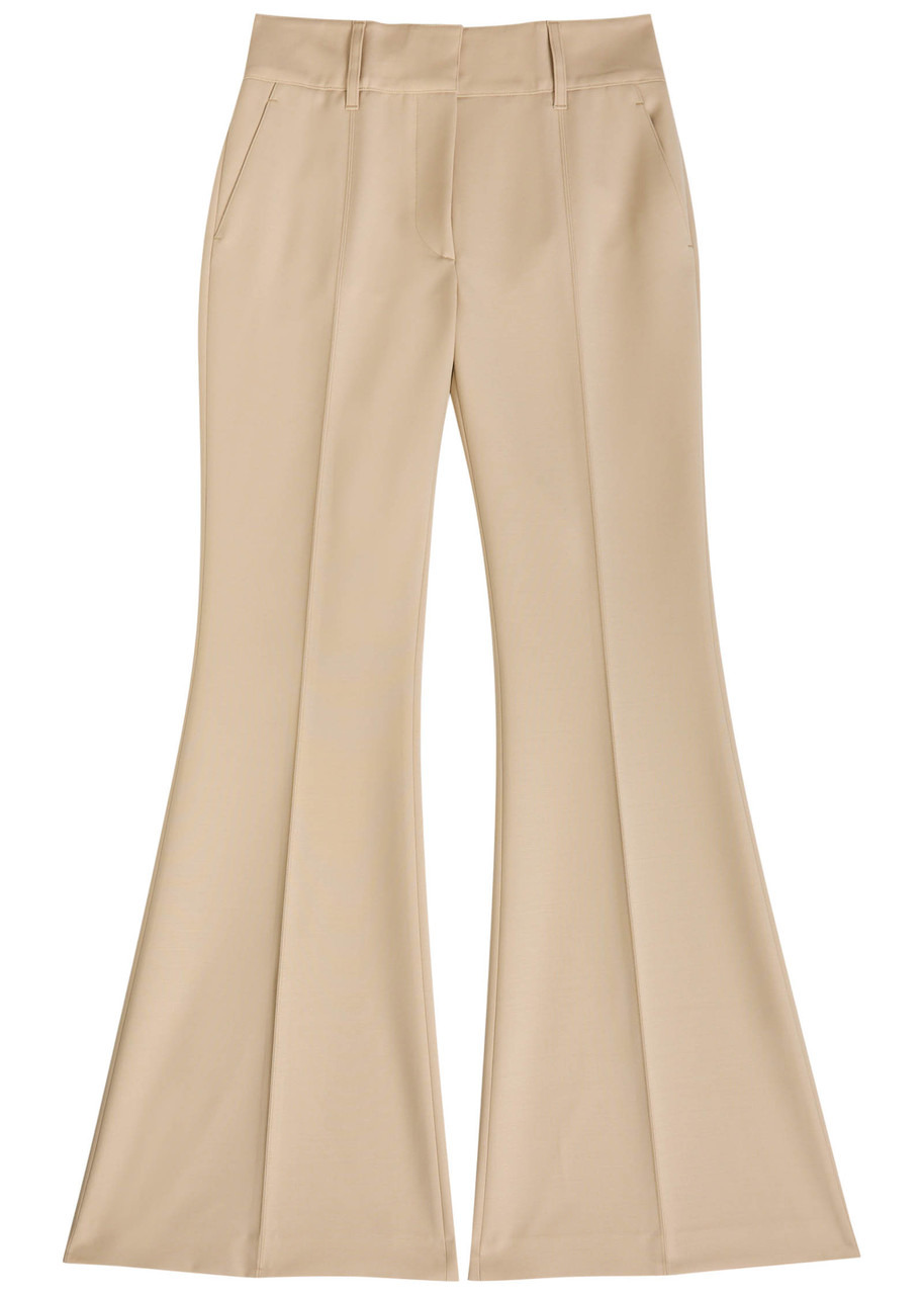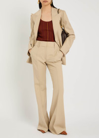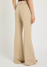 Info & Care Gabriella Hearst wool trousers Belt loops, side slip pockets, pressed crease and seam through legs, slit pocket at back Concealed button, hook and zip fastening at front 100% wool; lining: 100% cupro Dry clean; Co-ordinating items available Size & Fit Inside leg length: 35 inches/ 89cm Midweight High-rise fit, slightly flared-leg cut Model is 5'10"/ 178cm and wears a size;IT40
