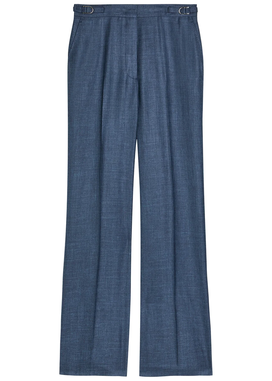 Info & Care Gabriela Hearst wool and silk-blend trousers Tabs at waist, side slip pockets, pressed crease through legs, back slit pockets Concealed button, hook and zip fastening at front 49% wool, 30% silk, 21% linen Dry clean Size & Fit Inside leg length: 34 inches/ 86.5cm Midweight Straight-leg cut Tailored style Model is 5'10"/ 178cm and wears a size;IT40