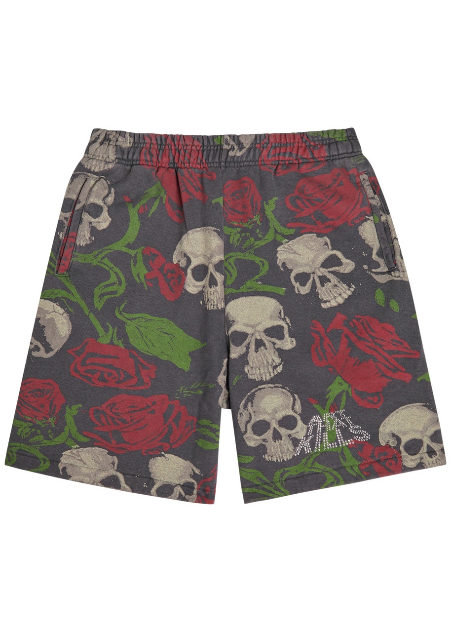 Info & Care Gallery Dept. cotton shorts Printed, concealed drawstring at elasticated waist, side slip pockets, rhinestone logo at hem Slips on 100% cotton Dry clean; Size & Fit Length waist to hem: 20 inches/ 51cm Midweight Relaxed fit, slim across the waist Model is 6'1"/ 186cm and wears a size medium
