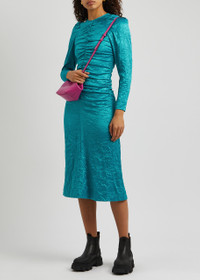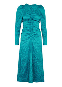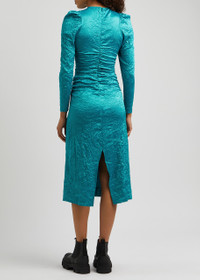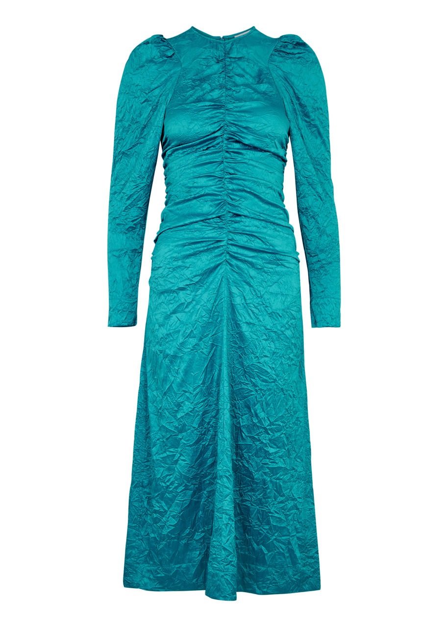 Crinkled ruched satin midi dress