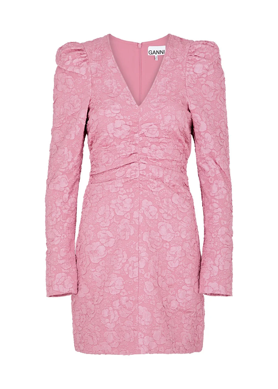 Floral-jacquard mini dress