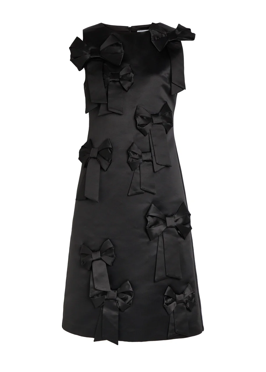BLACK SATIN BOW DRESS