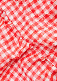RED CRINKLED CHECK TAFFETA BLOUSE