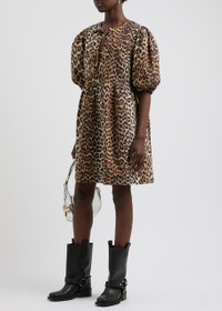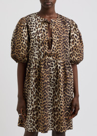 Ganni Leopard-print Cotton-poplin Mini Dress