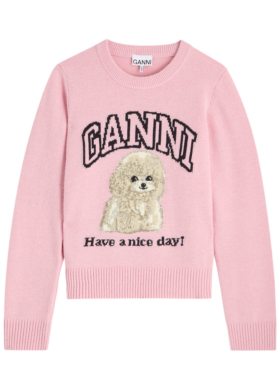 Ganni Poodle Logo-intarsia Wool-blend Jumper