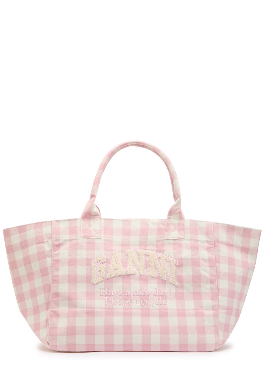Ganni Vichy Xxl Checked Shopper Canvas Tote