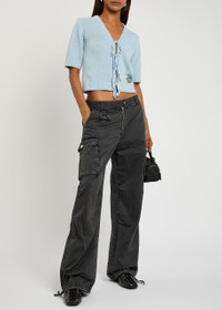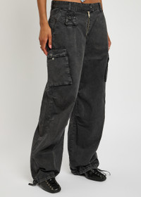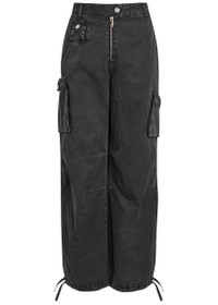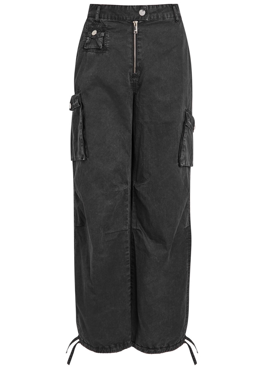 Info & Care Ganni cotton trousers Belt loops, side slip pockets, five push-stud fastening flap pockets, drawstring at cuffs, washed finish Partially concealed button, push-stud and zip fastening at front; 100% organic cotton Machine wash Size & Fit Inside leg length: 31 inches/ 78.5cm Midweight Baggy fit, slim across the waist; Model is 5'10"/ 178cm and wears a size;FR38
