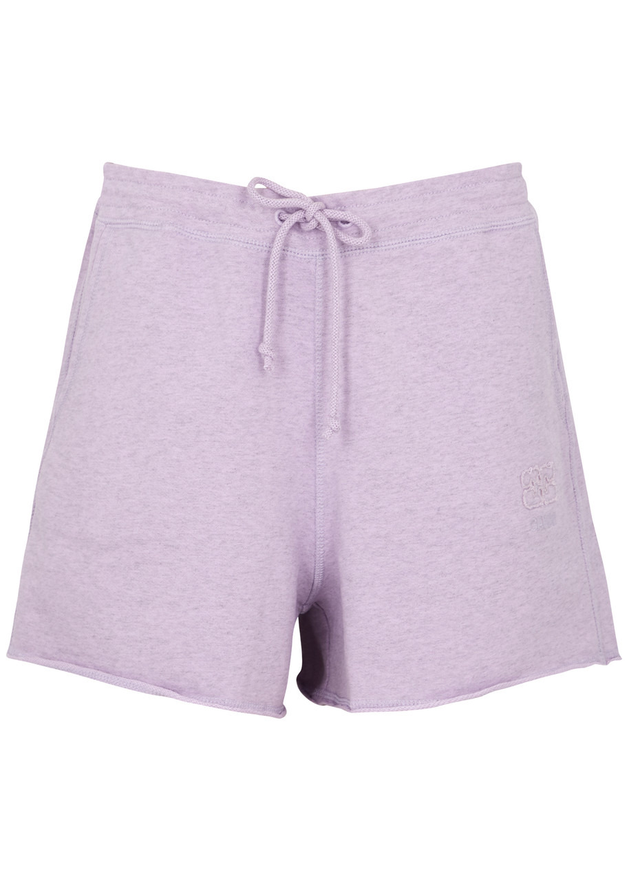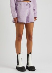 INFO & CARE - Ganni cotton shorts - Elasticated drawstring waist, two slip pockets, logo appliqué and embroidery, rolled trims - Pull on - 100% organic cotton - Machine wash SIZE & FIT - Length waist to hem: 14 inches/ 35.5cm - Midweight - Relaxed fit - Model is 5'9"/ 175cm and wears a size small