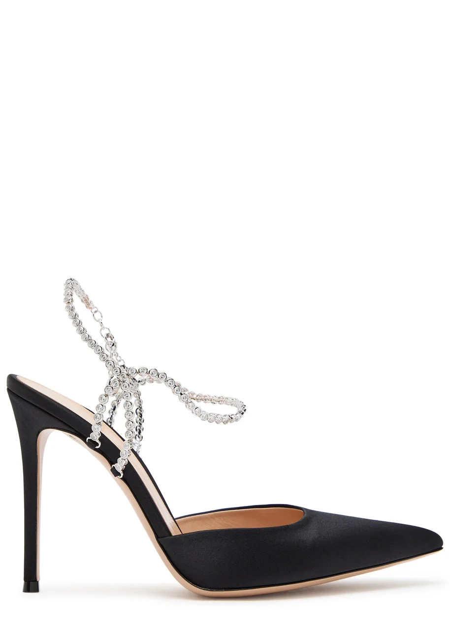 Info & Care Handmade Gianvito Rossi satin pumps Heel measures approximately 4 inches/ 105mm Pointed toe Crystal-embellished ankle;strap Size & Fit Only available in full sizes, go up to the nearest whole size if you take a half size