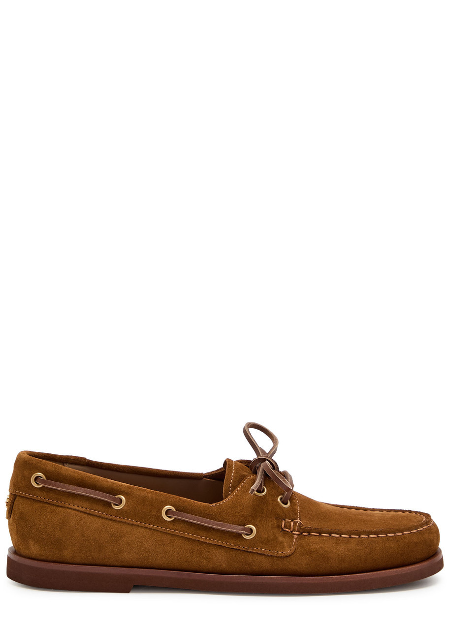 Info & Care Gianvito Rossi suede loafers Lace-up front and trims, designer plaque at back, foam sole,;concentric stitching at round toe Slip-on Size & Fit Only available in full sizes, go up to the nearest whole size if you take a half size