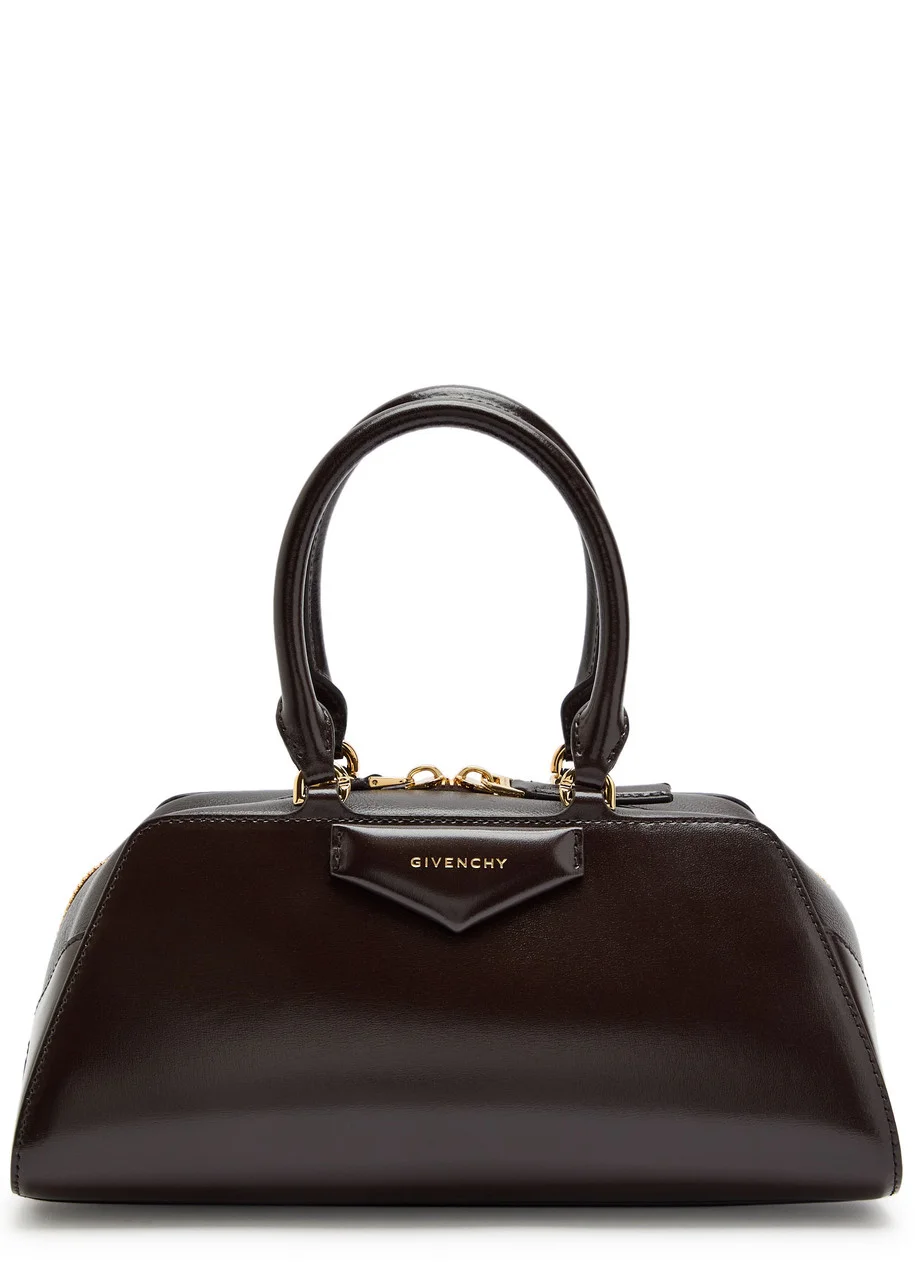 Info & Care Givenchy leather top handle bag Two top handles, detachable adjustable shoulder strap, designer plaque, grained finish at top, designer-engraved hardware, internal card slot, fully lined Two-way zip fastening across top Size & Fit Width: 11 inches/ 28cm Height: 5 inches/ 12.5cm Depth: 5.5 inches/ 14cm Top handle drop: 5 inches/ 12.5cm Min. shoulder strap drop: 20.5 inches/ 52cm Max. shoulder strap drop: 23.5 inches/ 59.5cm