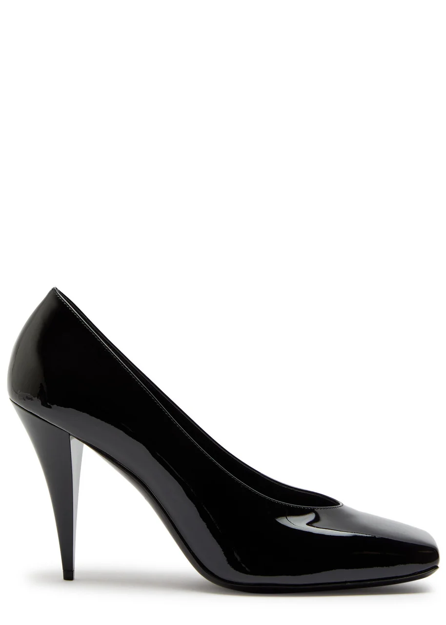 Info & Care Givenchy patent leather pumps Heel measures approximately 3.75 inches/ 95mm Square toe Slip-on Size & Fit Only available in full sizes, go up to the nearest whole size if you take a half size