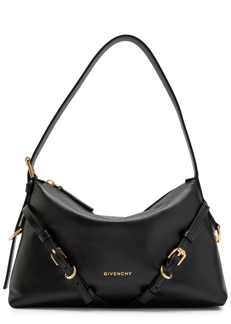 Info & Care Givenchy leather shoulder bag Adjustable shoulder strap, metallic designer stamp at front, designer-engraved buckle-fastening straps, D-ring details at sides, fully lined Zip fastening across top Size & Fit Width: 11 inches/ 28cm Height: 7 inches/ 17.5cm Depth: 3.5 inches/ 9cm Min. shoulder strap drop: 7 inches/ 17.5cm Max. shoulder strap drop: 9.5 inches/ 24cm