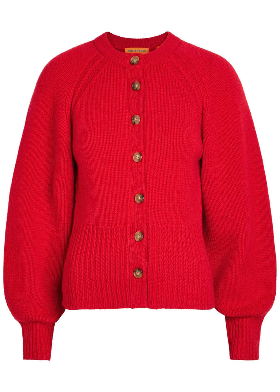 Info & Care Guest In Residence cashmere cardigan Crew-neck, rounded raglan sleeves, ribbed trims Button fastenings through front 100% cashmere Hand wash; Size & Fit Length shoulder to hem: 22.5 inches/ 57.5cm Midweight Slim fit Model is 5'10"/ 178cm and wears a size small