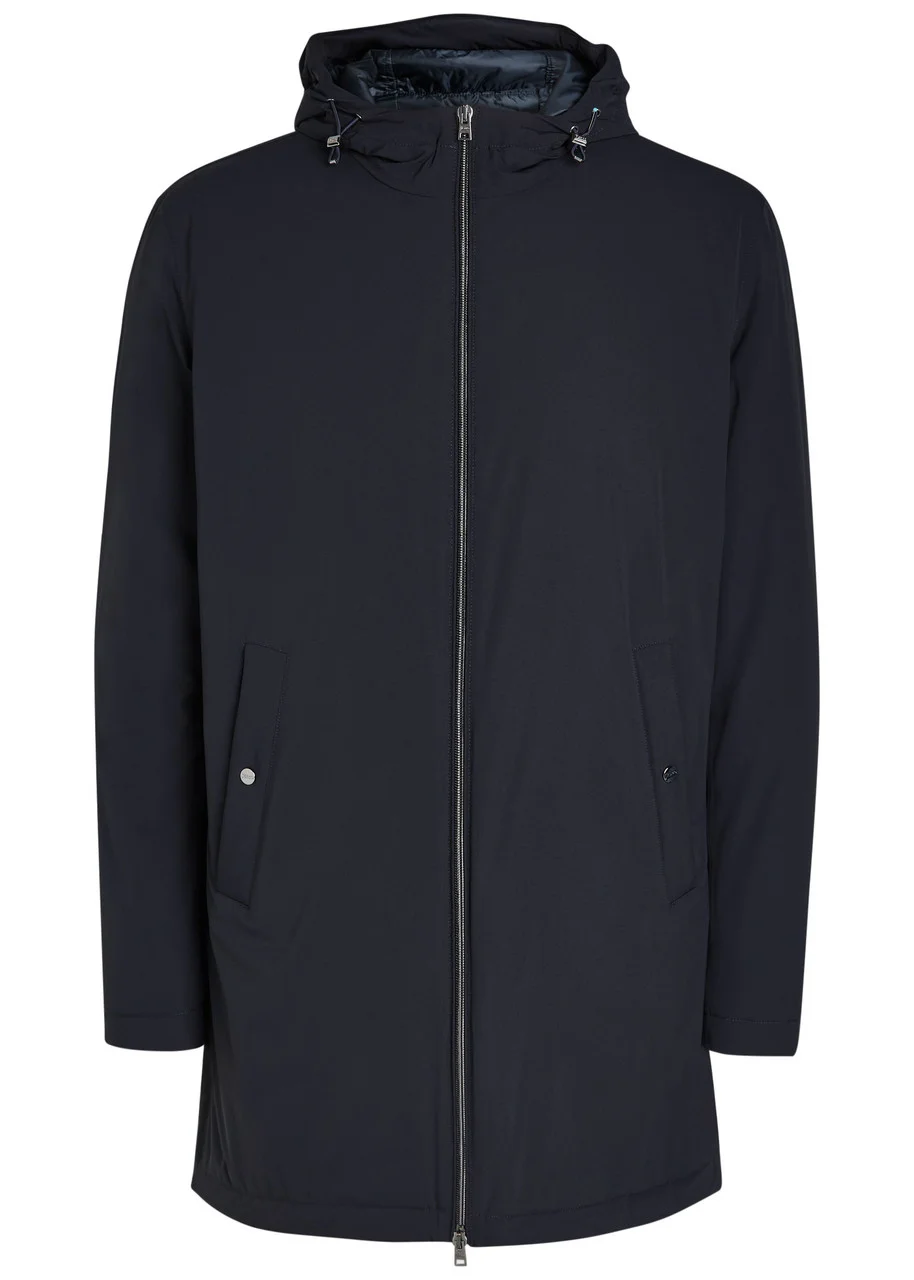 Info & Care Herno stretch-shell jacket Can be folded into a transportable pouch Slightly padded, toggle-fastening hood, press-stud fastening side pockets,;fully lined Two-way zip fastening through front 86% polyamide, 14% elastane Dry clean Size & Fit Length shoulder to hem: 34 inches/ 86cm Midweight Relaxed fit Model is 6'1"/ 185cm, chest size 38.5 inches and wears a size;IT48