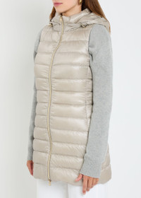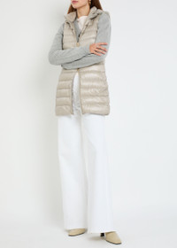 Info & Care Herno shell;gilet Quilted, detachable drawstring hood with designer plaque, high-neck,;zip-fastening side slip pockets, pearlescent finish, fully lined Two-way zip fastening through front 100% polyamide; filling: 90% down, 10% feather Hand wash Size & Fit Length shoulder to hem: 29 inches/ 73.5cm Lightweight Slim fit Model is 5'9"/ 175cm and wears a size;IT40