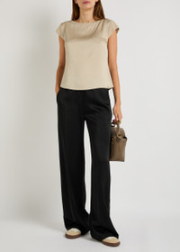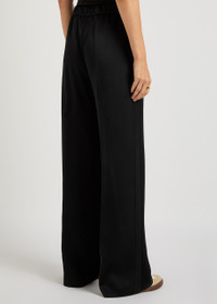 Info & Care Herno crepe de chine trousers Elasticated drawstring waistband, designer plaque at waist, side slip pockets, pressed crease through legs Pull on 72% acetate, 28% viscose Dry clean Size & Fit Inside leg length: 32.5 inches/ 83cm Midweight; Wide-leg cut Model is 5'9"/ 175cm and wears a size IT40