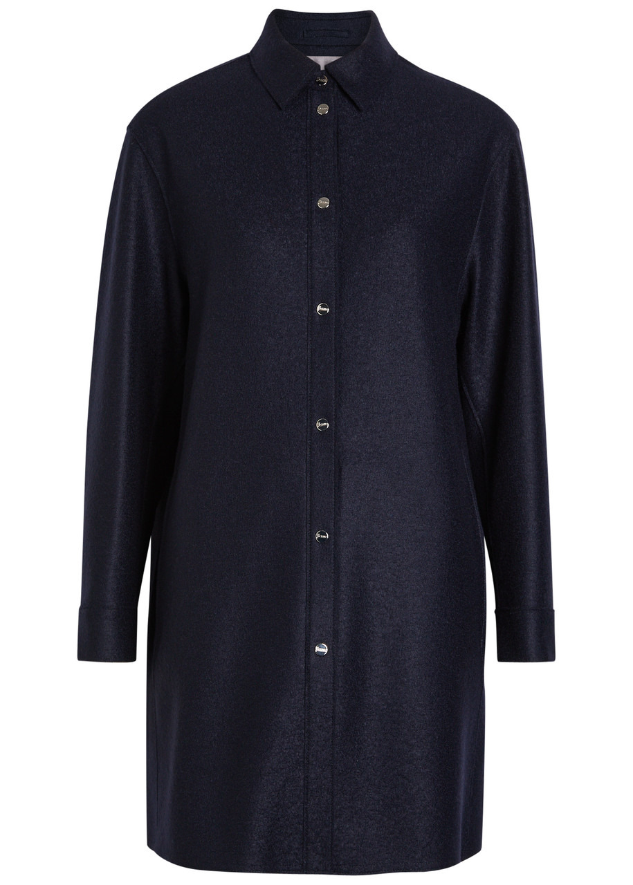 Info & Care Herno wool overshirt Dropped shoulders, press-stud fastening cuffs, side slip pockets, designer plaque at back neck Press-stud fastenings through front 100% wool Dry clean Size & Fit Length shoulder to hem: 34 inches/ 86.5cm Midweight Relaxed fit Model is 5'9"/ 175cm and wears a size IT40