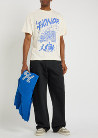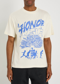 Info & Care Honor The Gift cotton T-shirt Ribbed crew-neck, designer-printed front, designer tag at side Slips on 100% cotton Machine wash; Size & Fit Length shoulder to hem: 28 inches/ 71cm Midweight Relaxed, boxy fit Model is 6'2"/ 188cm, chest size 38 inches and wears a size medium