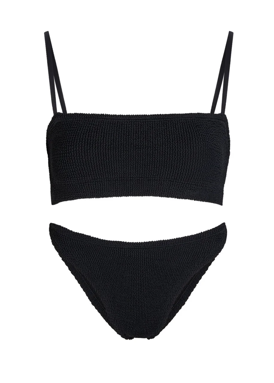Info & Care Hunza G crinkle bikini The Original Crinkle material Top: square-neck, elasticated shoulder straps, slips on Briefs:;pulls on 97% polyamide, 3% elastane; Machine wash Size & Fit One size; will comfortably wear a size UK6-UK14