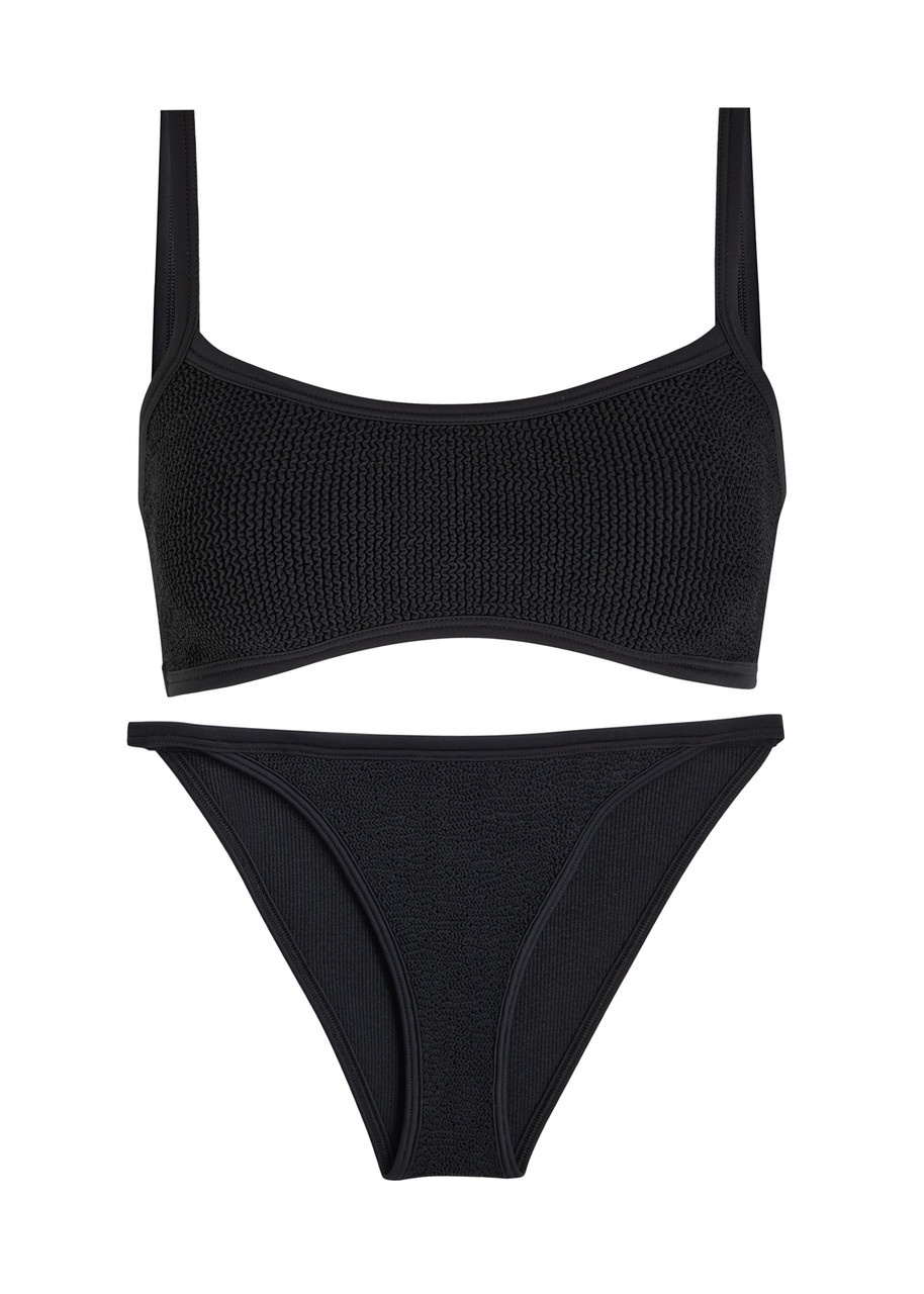 Info & Care Hunza G seersucker bikini Top: elasticated, scoop-neck Briefs: elasticated 97% polyamide, 3% elastane; Machine wash; Size & Fit One size will comfortably fit a size UK8-UK16;