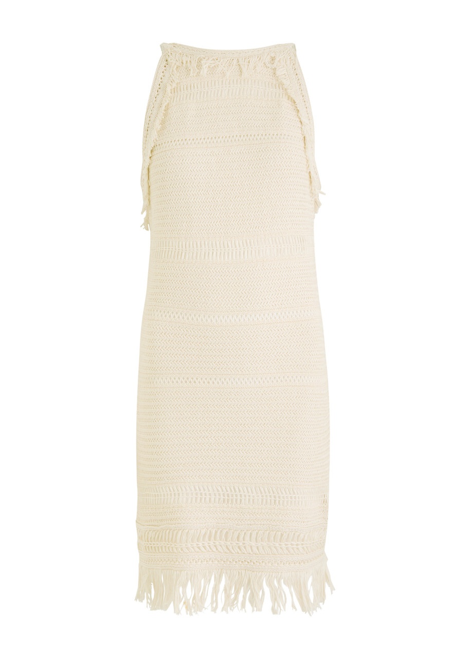 Info & Care Isabel Marant Etoile;cotton-knit dress Woven design, tie-fastening straps, fringed;trims Can be tied multiple ways Slips on; 100% cotton Hand wash Size & Fit Length shoulder to hem: 36 inches/ 91.5cm Midweight Slim fit Model is 5'10"/ 178cm and wears a size;FR38