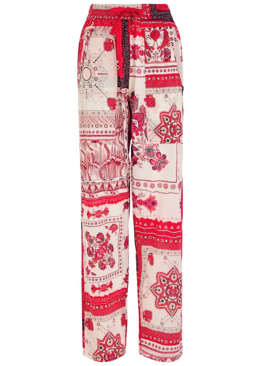 Info & Care Isabel Marant Etoile cotton trousers Printed, elsticated drawstring waist, side slip pockets, back patch pockets Pull on 100% cotton Machine wash Size & Fit Inside leg length: 31 inches/ 78.5cm Midweight Relaxed fit, slightly tapered leg; Model is 5'10"/ 178cm and wears a size FR38