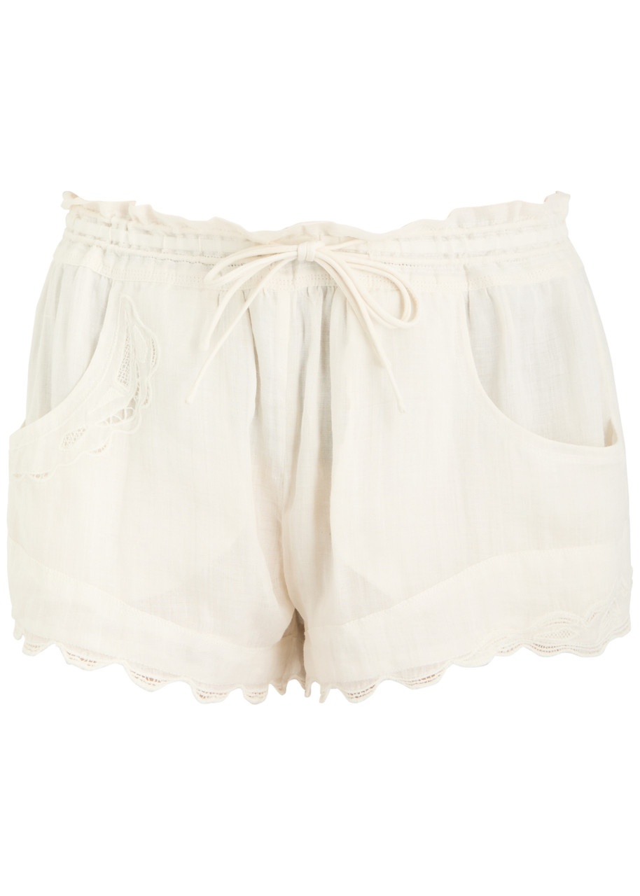 Info & Care Isabel Marant woven shorts Dual drawstring waistband with ruffled trim, two slip pockets, embroidered details,;scalloped trims, fully lined Pull on; 100%;ramie; lining: 100% silk Hand wash Size & Fit Length waist to hem: 10 inches/ 25.5cm Midweight;; Regular fit; Model is 5'10"/ 178cm and wears a size FR36 Please note, this style is particularly short in style