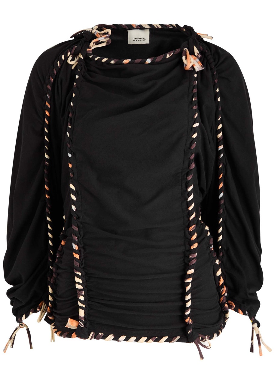 Info & Care Isable Marant cotton top Twisted weave effect with tie fastenings, wide-neck, dolman sleeves, gathered details; Slips on; 100% cotton Hand wash Size & Fit Length shoulder to hem: 22 inches/ 56cm Midweight Relaxed fit Model is 5'9"/ 175cm and wears a size;FR36