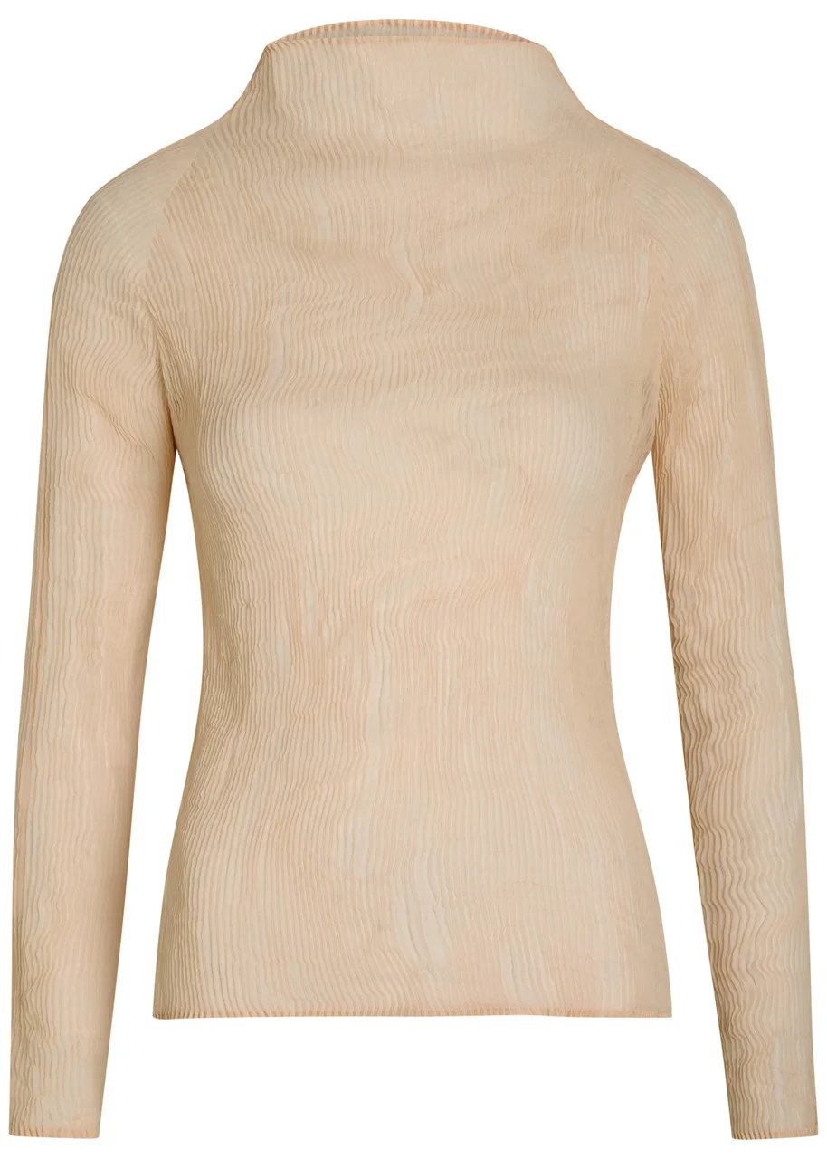 Info & Care Issey Miyake semi-sheer chiffon top Pleated,;mock-neck Slips on 100% polyester Machine wash Issey Miyake sizing is based on height. Please refer to the Size & Fit section for more information. Size & Fit Length shoulder to hem: 22 inches/ 56cm Midweight Slim;fit Model is 5'10"/ 178cm and wears a size 2 Size 1 = height: 150-155cm Size 2 = height: 156-160cm Size 3 = height: 161-165cm Size 4 = height: 166-170cm Size 5 = height: 171-175cm
