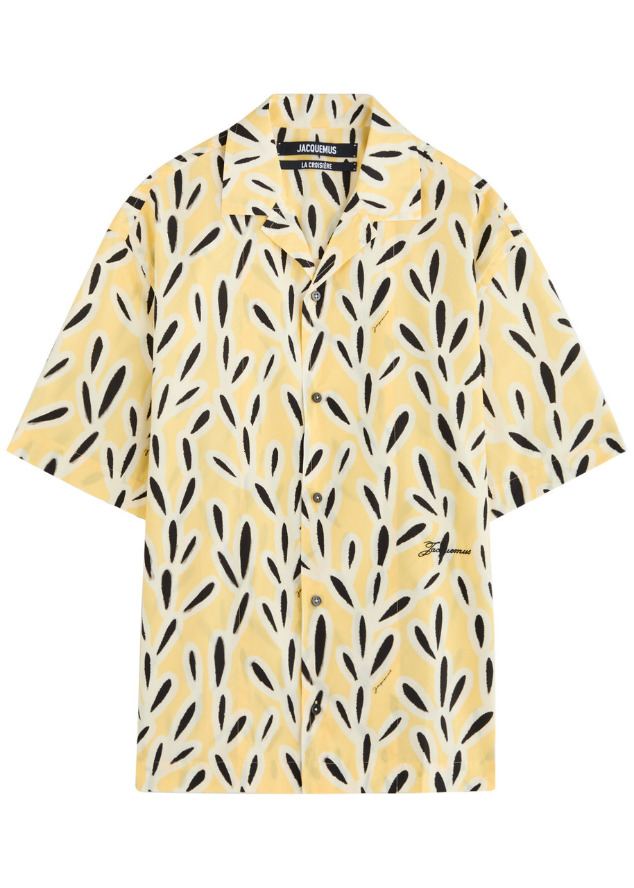 Info & Care Jacquemus cotton-poplin shirt; Printed, camp collar, dropped shoulders, logo print, logo tab applique at back Button-fastenings through front; 100% cotton Hand wash; Size & Fit Length shoulder to hem: 28.5 inches/ 72.5cm Midweight; Relaxed, boxy fit; Model is 6'3"/ 191cm, chest size 38 inches and wears a size;IT48;
