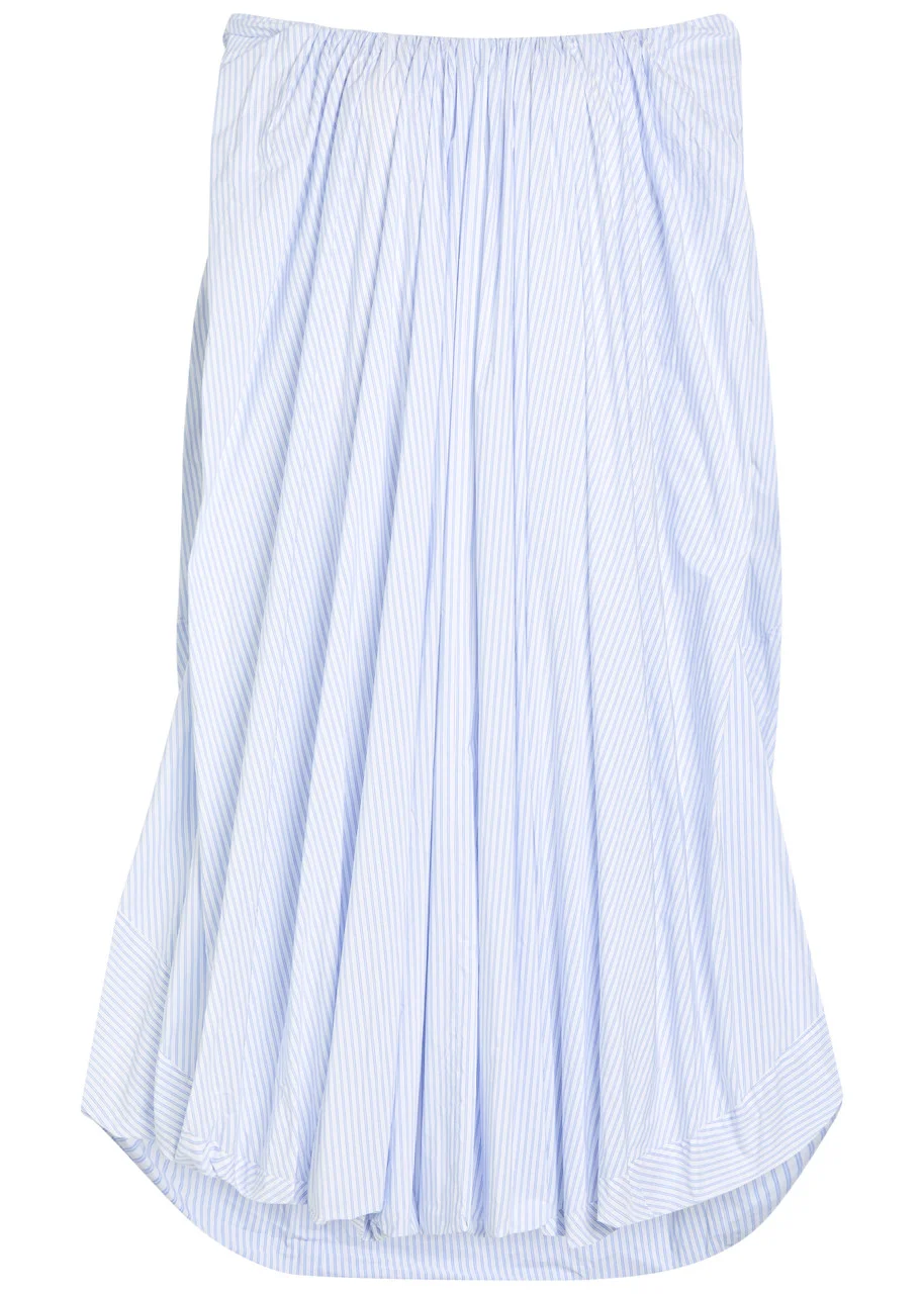 Info & Care Jacquemus poplin;dress Striped, draped billow design, elasticated off-the-shoulder neckline, boning through upper bodice underlay, cascading pleats, balloon hem, longer back hem, fully lined Concealed hook fastenings at back 55% polyester, 45% cotton; lining: 100% polyester Dry clean Size & Fit Length shoulder to hem: 44 inches/ 111.5cm; back: 48 inches/ 122cm Midweight Relaxed fit, flared from the shoulders; Model is 5'9"/ 175cm and wears a size;FR36