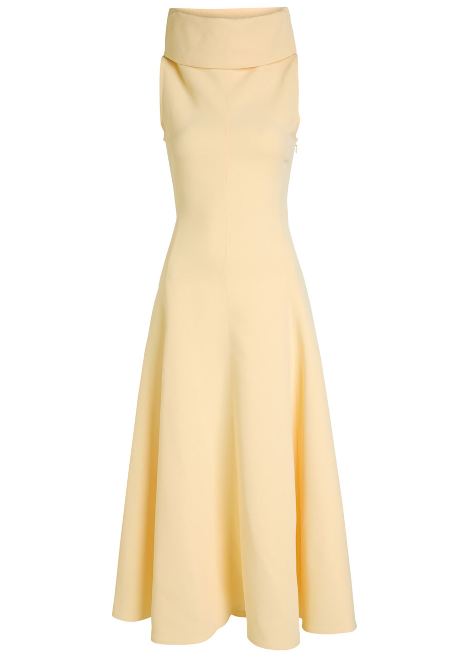 Info & Care Jacquemus crepe dress Panelled, draped stand collar with logo embroidery, curved hem Concealed zip fastening at side 70% polyester, 30% viscose Dry clean Size & Fit Length shoulder to hem: 49 inches/ 124.5cm Midweight Slim fit, flared from the waist Model is 5'9"/ 175cm and wears a size FR36