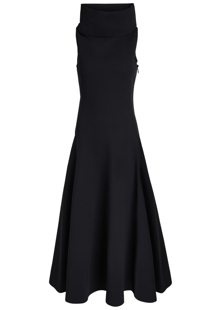 Info & Care Jacquemus crepe dress Panelled, draped stand collar with logo embroidery, curved hem Concealed zip fastening at side 70% polyester, 30% viscose Dry clean Size & Fit Length shoulder to hem: 49 inches/ 124.5cm Midweight Slim fit, flared from the waist Model is 5'9"/ 175cm and wears a size FR36