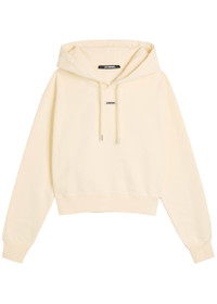 Info & Care Jacquemus cotton sweatshirt Drawstring hood, dropped shoulders, logo-embroidered grosgrain tab, ribbed trims, designer-engraved hardware Slips on 100% cotton Machine wash; Size & Fit Length shoulder to hem: 20 inches/ 51cm Midweight Boxy, relaxed fit Model is 5'9"/ 175cm and wears a size small;