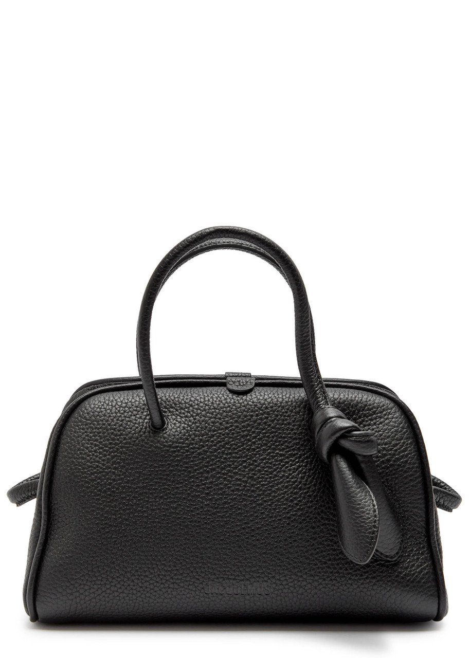 Info & Care Jacquemus grained leather top handle bag Two top handles, detachable adjustable shoulder strap, knotted detail, debossed logo, strap embellishments at sides, internal card slot, fully lined Two-way zip-fastening across top; Size & Fit Width: 10 inches/ 25.5cm Height: 6 inches/ 15cm Depth: 3 inches/ 7.5cm Top handle drop: 3.5 inches/ 9cm Min. shoulder strap drop: 18.5 inches/ 47cm Max. shoulder strap drop: 21.5 inches/ 54.5cm