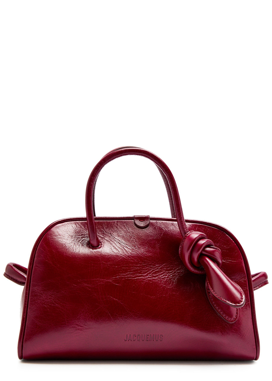 Info & Care Jacquemus leather top handle bag Two top handles, detachable adjustable shoulder strap, knotted detail, debossed logo, strap embellishments at sides, internal card slot, fully lined Two-way zip-fastening across top; Size & Fit Width: 10 inches/ 25.5cm Height: 6 inches/ 15cm Depth: 3 inches/ 7.5cm Top handle drop: 3.5 inches/ 9cm Min. shoulder strap drop: 18.5 inches/ 47cm Max. shoulder strap drop: 21.5 inches/ 54.5cm