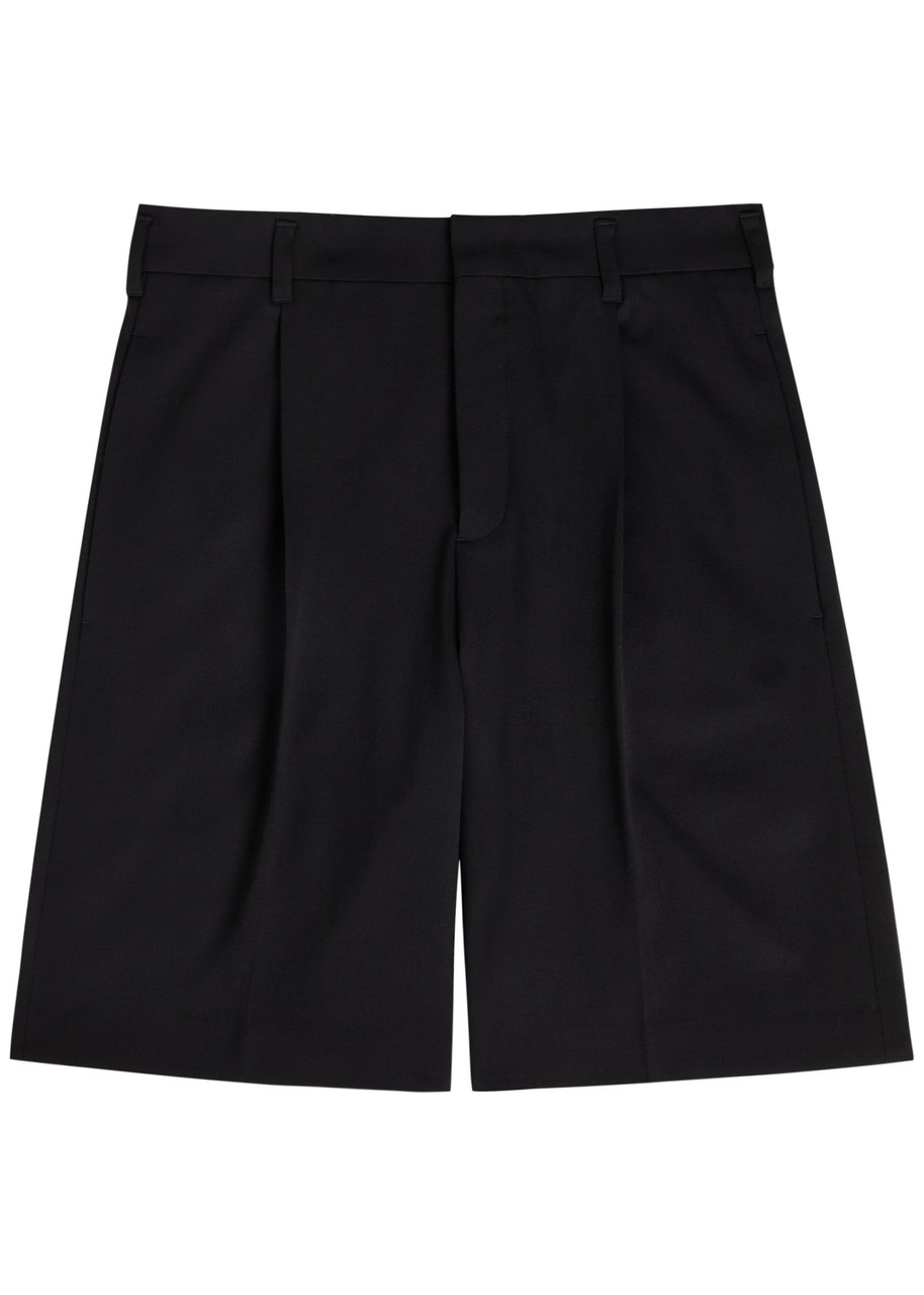 Info & Care Jacquemus wool-blend shorts Belt loops, pleats at waist, side slip pockets, button-fastening back flap pockets Concealed zip, hook and button fastenings at front 95% wool, 5% elastane Dry clean Size & Fit Length;waist to hem: 22.5 inches/ 57cm Midweight Relaxed;fit Model is 6'1"/ 185cm and wears a size FR48
