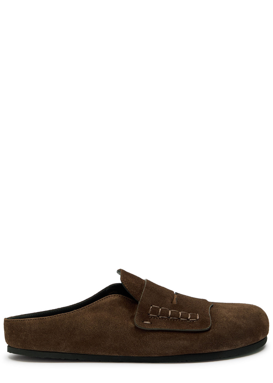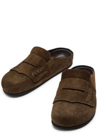 Info & Care Jacquemus suede mules Penny strap, round toe, contoured footbed, textured rubber sole Slip-on Size & Fit Only available in full sizes, go up to the nearest whole size if you take a half size