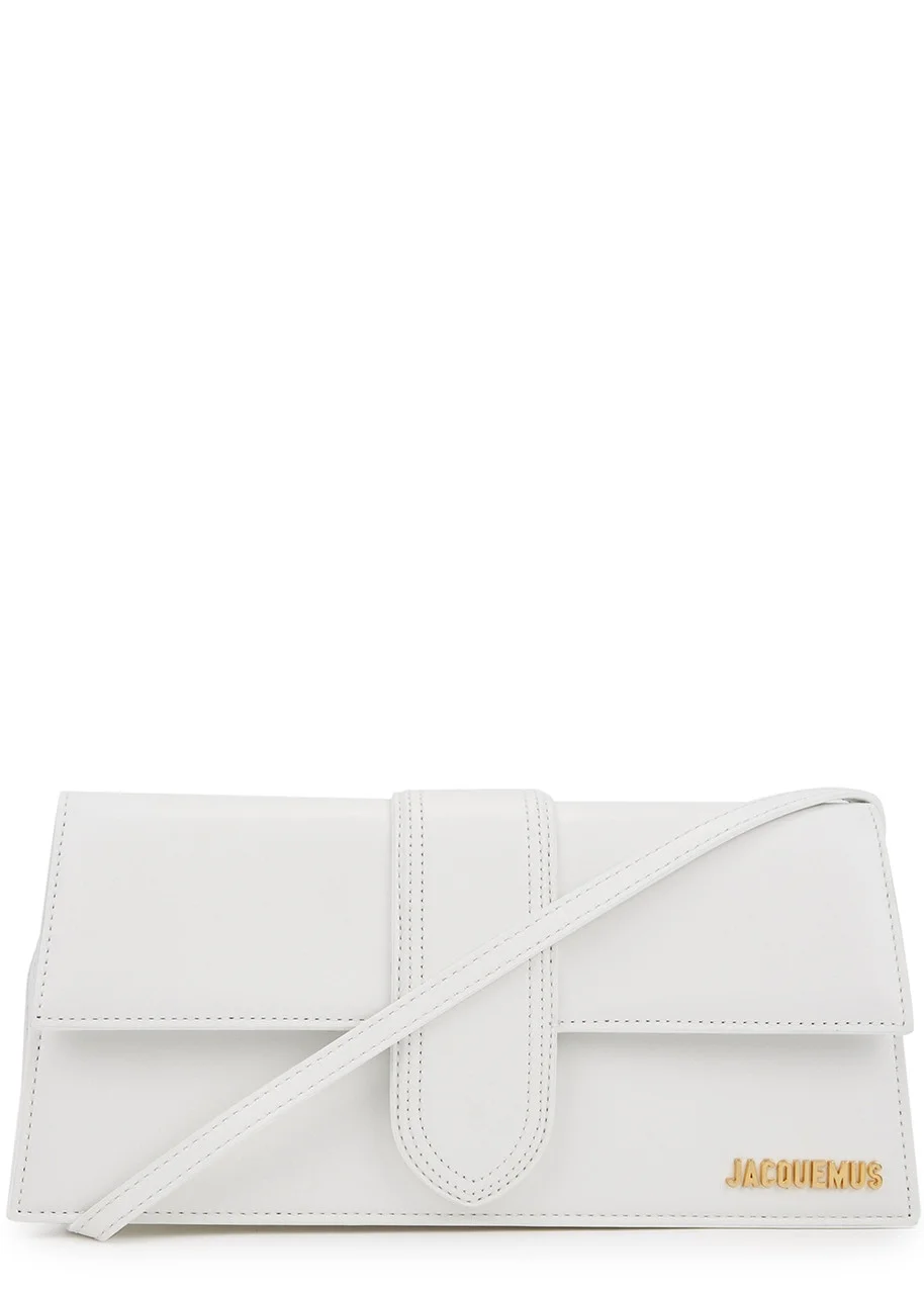 STYLE NOTES Jacquemus continues drive its cult accessories line with the compact Le Bambino bag. Crafted to a rectangular silhouette, this white leather style is adorned with the French label’s logo in gold-tone hardware and fitted with a roomy main compartment. INFO & CARE - Jacquemus leather top handle bag - Top handle, designer plaque, back patch pocket, internal patch pocket, fully lined - Concealed magnetic fastening at flap front SIZE & FIT - Width: 10.2 inches/ 26cm - Height: 5 inches/ 13cm - Depth: 2 inches/ 5cm - Top handle drop: 8.5 inches/ 22cm