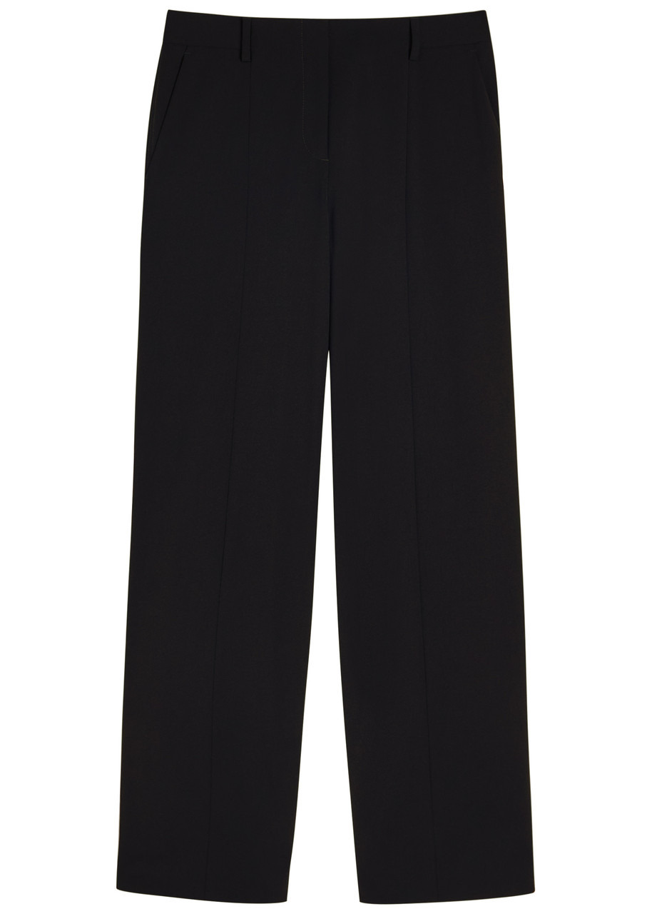 Info & Care Jean Paul Gaultier twill trousers Belt loops, side slip pockets, button-fastening pockets at back, press-stud fastenings at pleated split cuffs Concealed button, hook and zip fastening at front 94% polyamide, 6% elastane Machine wash Size & Fit Inside leg length: 32 inches/ 81cm Midweight High-waisted fit, straight-leg cut Model is 5'9"/ 175cm and wears a size;FR36
