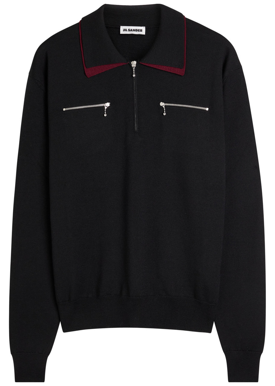Info & Care Jil Sander wool polo shirt Layered collar, zip-fastening neck, zip-fastenning chest pockets, ribbed trims Slips on 100% wool Dry clean Size & Fit Length shoulder to hem: 26.5 inches/ 67cm Midweight Relaxed;fit Model is 6'1"/ 185cm, chest size 38 inches and wears a size medium