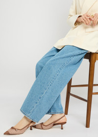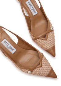 Amita 45 Cappuccino Leather and Raffia Slingback Pumps