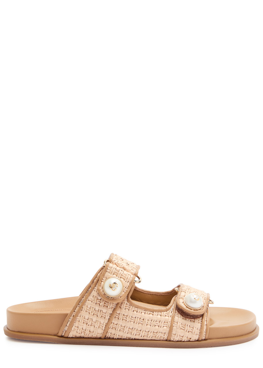 Jimmy Choo Fayence Embellished Raffia Sliders