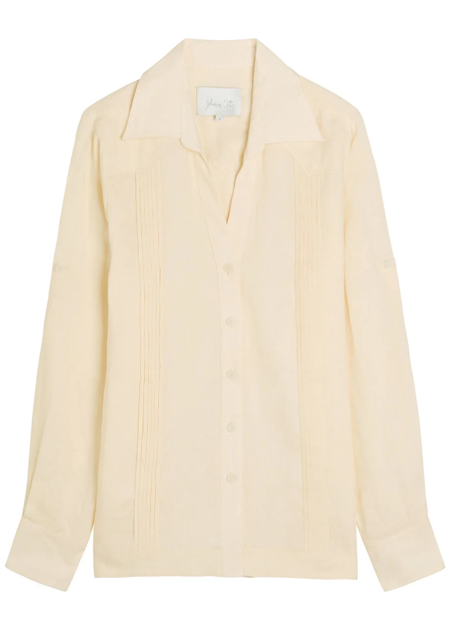 Johanna Ortiz Manly Guayabera Pleated Linen Shirt
